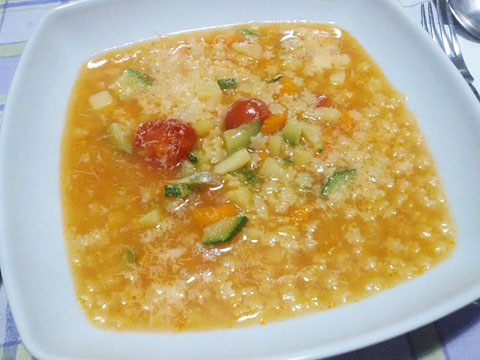 Versate 350gr di stelline n.22 e salate. Cuocete il tempo indicato sulla confezione della pasta. Impiattate e aggiungete a piacere una bella manciata di parmigiano grattugiato